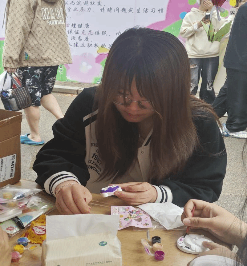 心委会设计了几项互动性强且趣味十足的小活动,如“小狗集市”活动场地展示了各式各样的纸小狗,参与者可以在卡片上写下自己的心里话、愿望或祝福,然后领养一只纸小狗作为陪伴。此外,手工创作区还提供了丰富的材料,让参与者能够现场制作自己的纸小狗或装饰已领养的纸小狗。通过领养和互动,学生们感受到了温暖与关怀,增强了自我认知和情感表达能力。