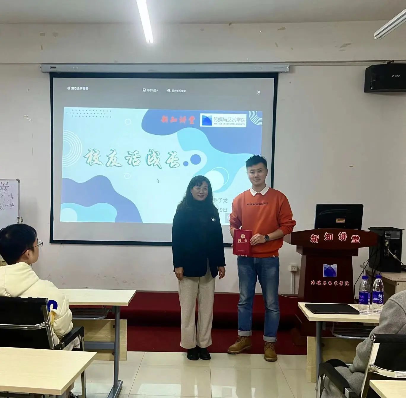 分享会上,乔子龙分享了自己从事广播电视行业的工作经历,并为同学们提出六点建议:一、和优秀的人建立联系,向他们学习。二、有开阔的视野,不盲目前进,寻找正确的方向,走出去看看。三、及时调整前进策略。四、寻找适合自己的平台,不怕辛苦。五、做一个有价值的人。六、做一个真诚、善良的人。