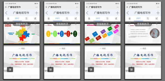 为了更好的与学生交流沟通,我们在开课前建立了广播电视写作课程QQ群中,整理了教学大纲、教学日历、电子版教材教学参考书等提前上传到群文件中,帮助学生更好地了解本门课程以及课程安排;每周课前会在群里发布通知公告提醒学生相关的课程信息和一些需要注意的事项等;课程根据教学内容提前设置好课外讨论题、综合训练项目安排、课外补充课件资料等充实课程内容拓展学生学习资料,帮助学生更好地吸收消化知识单元内容。