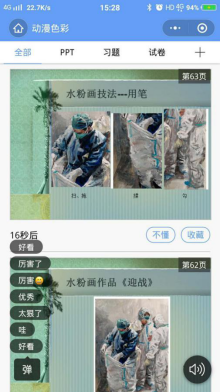 开学季到了,举国上下依然在全力抗击新冠肺炎病毒。特殊时期,特别对待。学生们停课不停学,任课教师们立即投入到紧张的线上教学工作,我这学期主要担任动画19级动画专业《动漫色彩》课程的教学任务。在备课期间,作为一名艺术专业的任课教师,我被无数艺术家以艺术创作投身抗“疫”行动所感动,他们全身心投入创作,用优秀的艺术作品,为武汉加油,我本人也在这期间创作了《致敬!抗疫的勇士们》系列水粉画作品,以此表达对勇敢逆行者的崇高敬意。在讲授专业课的同时,我将这些优秀的“抗疫”作品列入教学教案,作为教学范画进行教学分析讲解。讲授课程期间,针对作品的创作主题以及表现技法,同学们都给予了极大的关注,在学习专业知识的同时,又一次激发了他们对“抗疫”勇士们的崇高敬意,从而增强我们共同战胜疫情的决心与信心。通过实践,学生学习气氛热烈,对这些作品反映强烈,收到良好的教育教学效果。