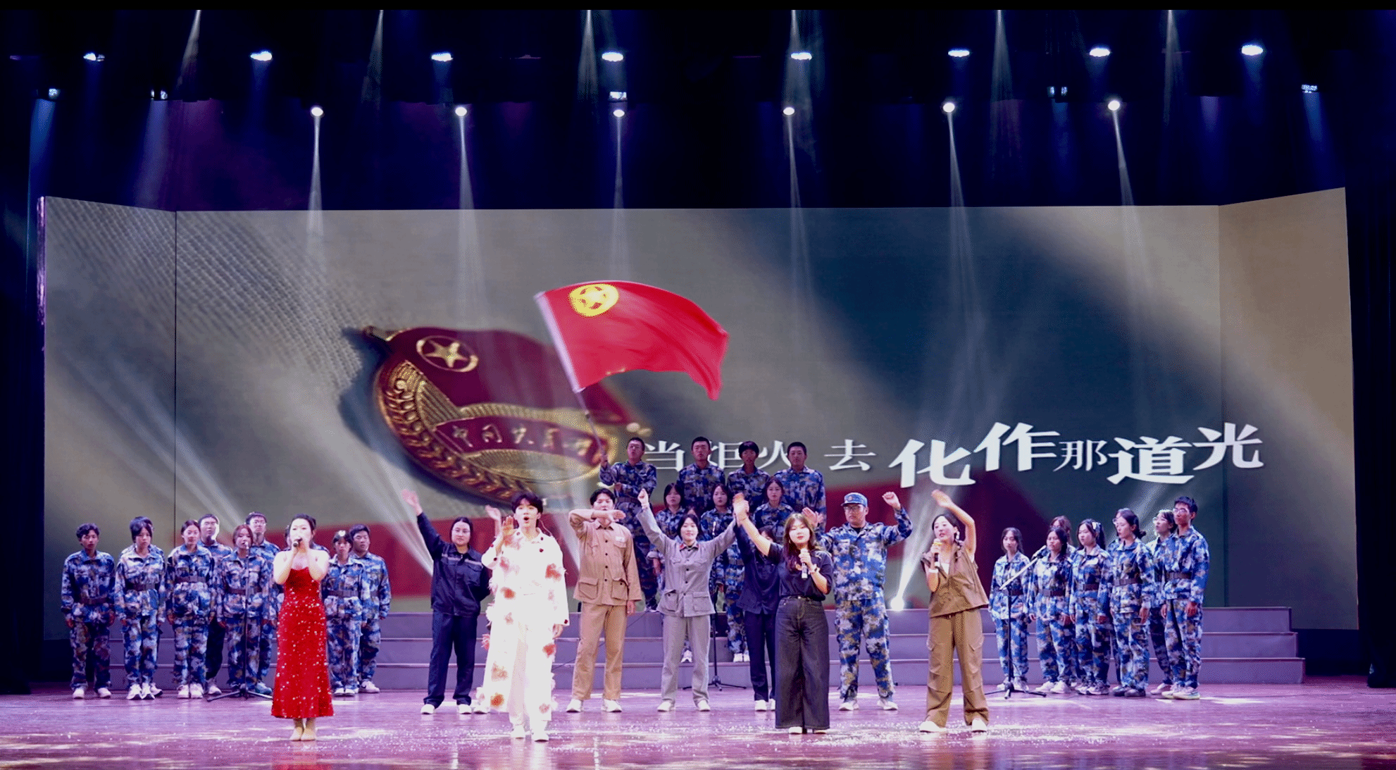 吴限及25级新生共同演绎的舞台剧《沂蒙薪火,青春有我》,结合中国人民抗日战争暨世界反法西斯战争胜利80周年背景,再现沂蒙精神的赤诚与坚守,“我的样子,就是中国的模样”的誓言响彻全场,引发师生强烈共鸣。