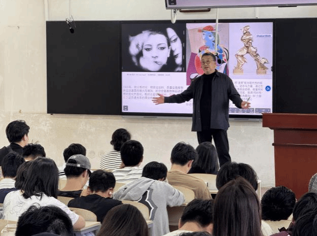 作为首场分享嘉宾,张丹教授以《智能时代下——当代艺术带给我们什么》为题展开演讲。讲座中,他围绕“智能技术对艺术创作的冲击”和“当代艺术的人文价值坚守”两大核心议题,结合国内外经典艺术案例,深入浅出地剖析了智能时代艺术发展的新趋势、新挑战。他强调,“技术是工具,而艺术的核心永远是人的情感与思考。”人工智能可以辅助艺术创作,但无法替代艺术家对生活的感知、对人性的洞察。他的分享不仅为在场师生厘清了智能时代艺术发展的方向,更引发了大家对“艺术本质”的深度思考。