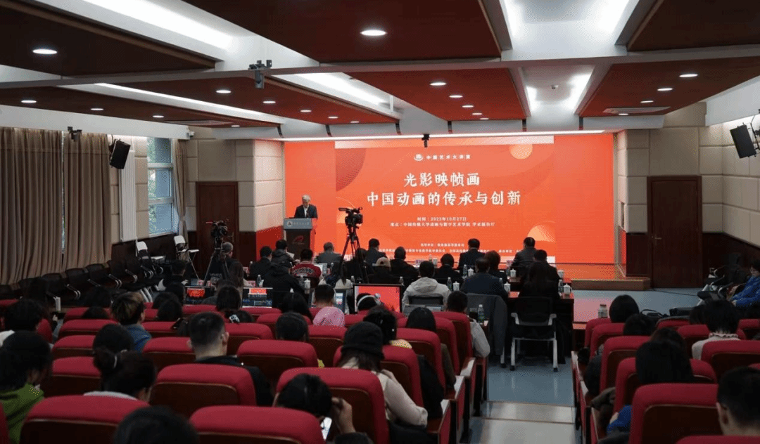 10月27日上午,调研团队在中国传媒大学参加“中国艺术大讲堂”第四讲的现场直播活动。“中国艺术大讲堂”是由教育部主办的高水平美育讲座,旨在汇聚艺术名家,弘扬中华美育精神,引领高校艺术教育发展方向。此次大讲堂以《光影映帧画:中国动画的传承与创新》为主题,由追光动画总裁于洲担任主讲人。他结合企业十二年发展实践,系统梳理中国动画行业百年历程,特别是以《白蛇缘起》《长安三万里》为典型案例,详细介绍了团队“科技+艺术” 赋能传统文化挖掘的路径。