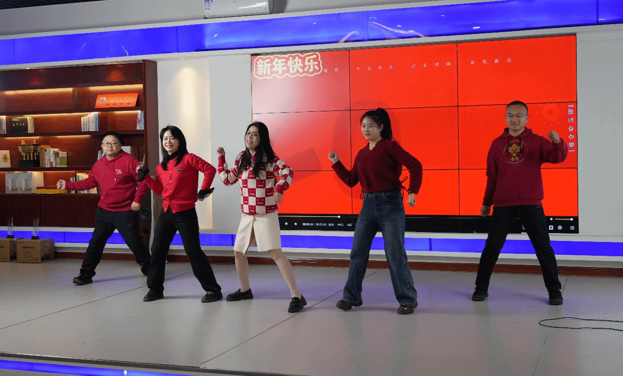 联欢会以主持人李晨、徐驰遥两位老师的开场白拉开序幕。随后,张晓宇、王楠等教师带来舞蹈《新年快乐》,灵动的舞步裹挟着新年的喜悦,为整场活动定下欢快基调。