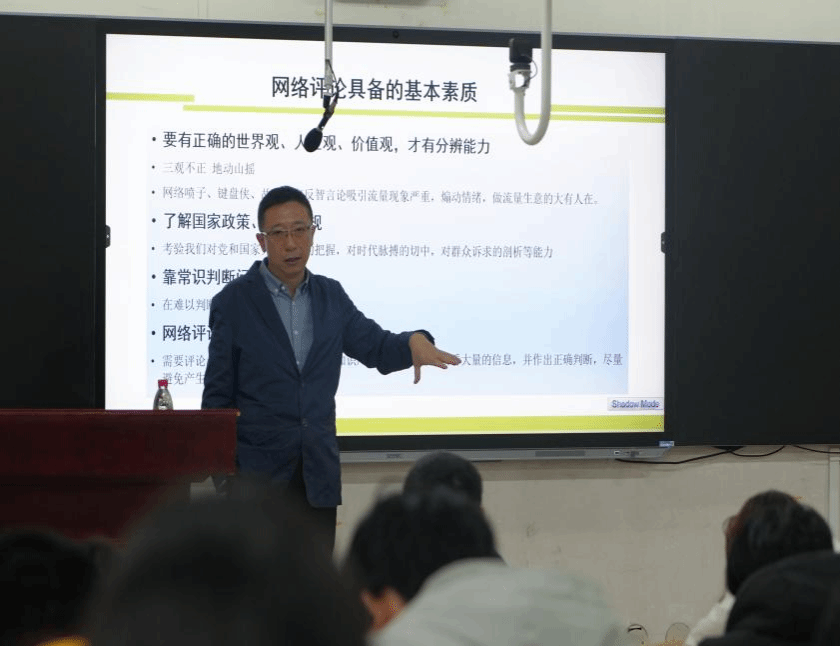 随后,孟教授以习近平总书记提出的“做好舆论引导工作,一定要把握好时、度、效”为导引,细致剖析网络评论如何正确把控“时”(时效、时机),“度”(深度、广度、温度、高度),“效”(效果、实效)等问题。他强调,网络评论可以锻炼敏锐度,也是个体参与社会建设的重要路径。要警惕以流量逻辑看待网络评论,更多立足时代背景,紧扣社会痛点,扎根现实土壤,回应社会关切,将评论与时代发展紧密结合,规避逻辑谬误,保持理性严谨。