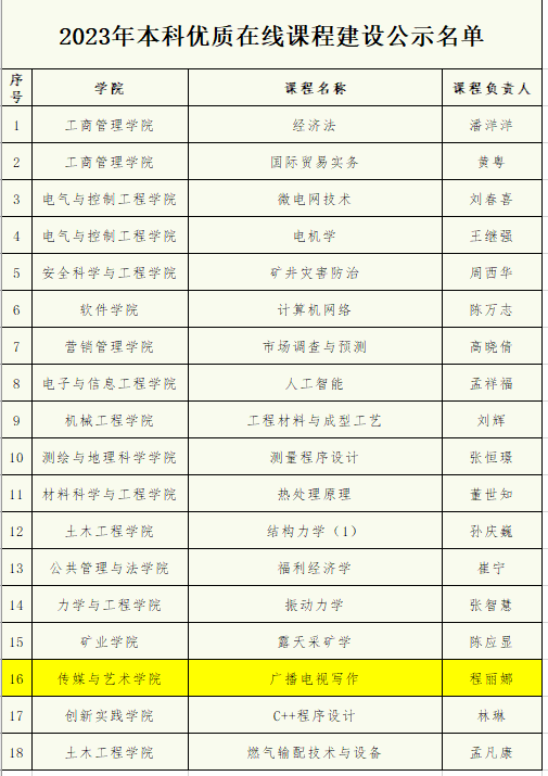 • 2024年以本课程为核心申报的《混合式智慧教学下广电专业一流课程建设与实践研究》项目,获校级教学成果二等奖。